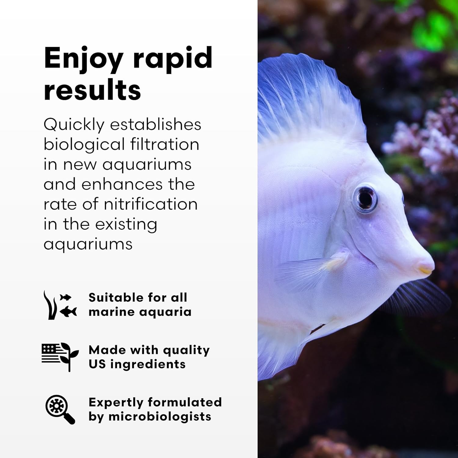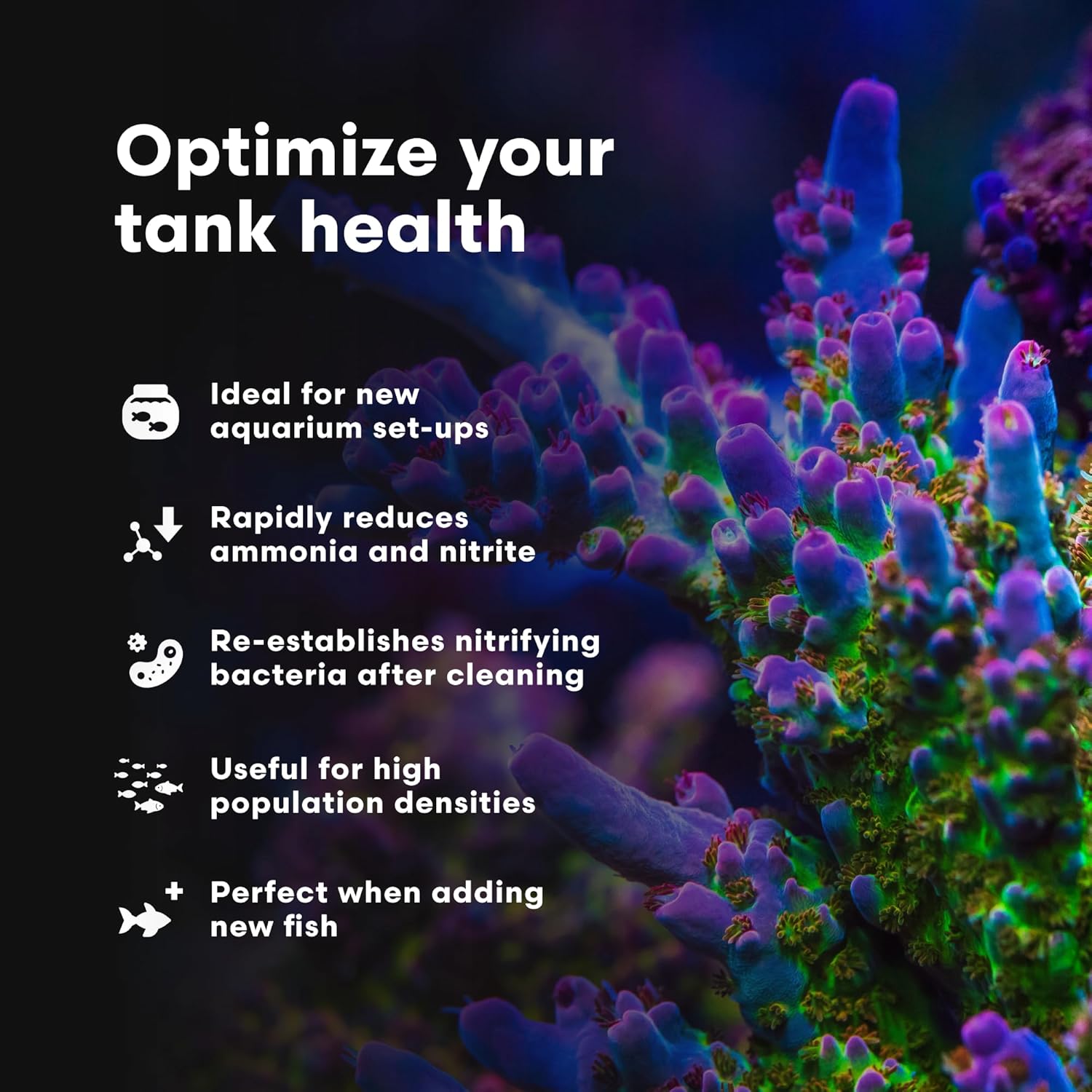 Kickstart your biofilter with super‑concentrated live nitrifying bacteria that convert ammonia and nitrite fast—helping new reef systems stabilize in about a week. 🧬⚡