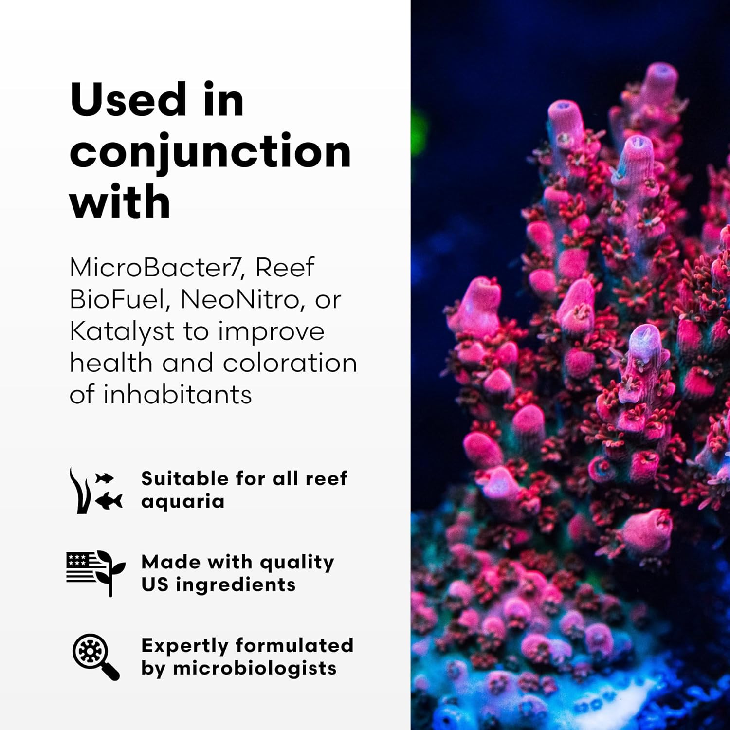 - Designed to work alongside MicroBacter7, Reef BioFuel/Katalyst, and NeoNitro
