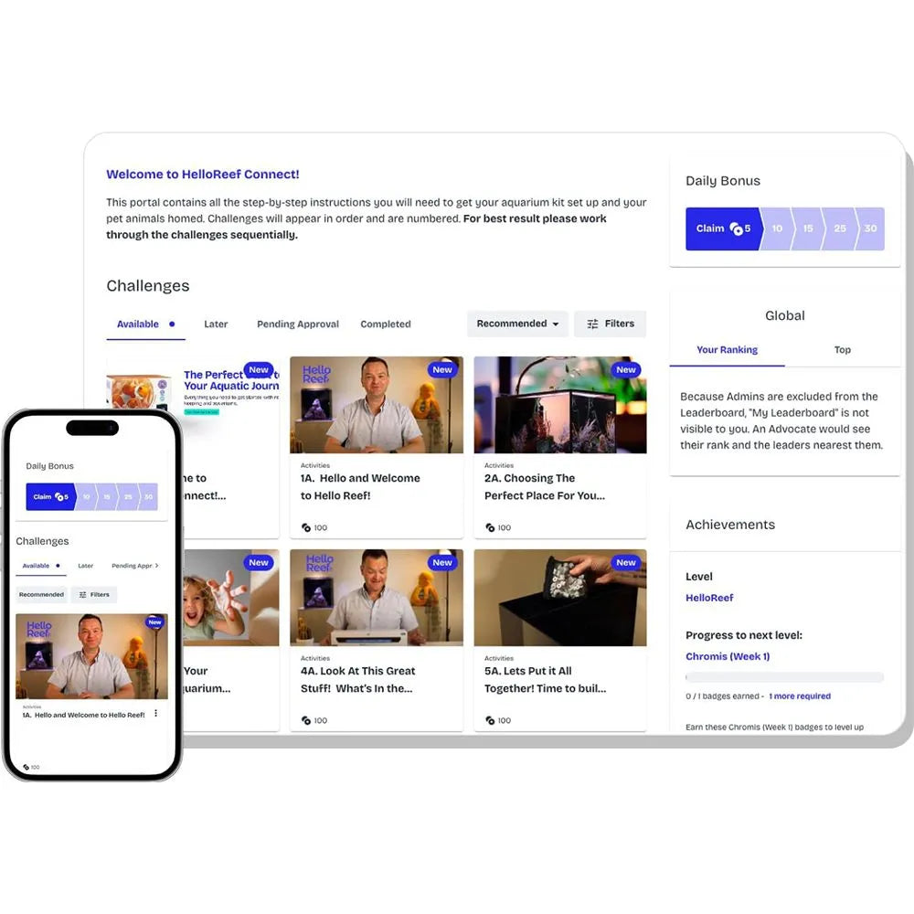 Our HelloReef kit has everything you need, from tank, heater, pump, and wavemaker to rock, sand, salt, and light. Even the packaging was designed for your success with numbered boxes, an easy to remove breakaway section, and a template for building the perfect sized home. But the best part? Step-by-step videos that walk you through every detail and make the entire process simple and fun.